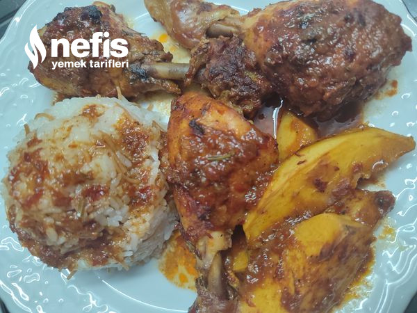 5. Ben bu sosa elma dilim patates de atıyorum tavuklarla pişiriyorum.