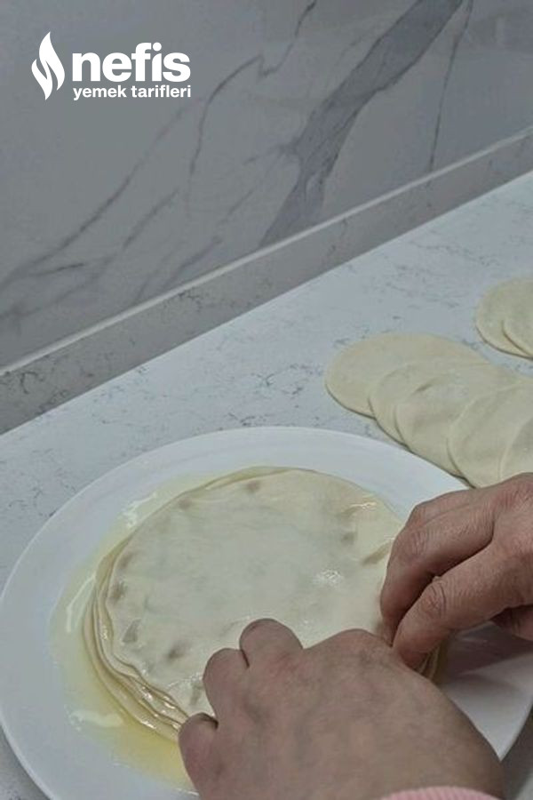 - 12 adet açtığınız hamuru ortalarını yağlayarak üst üste dizin.