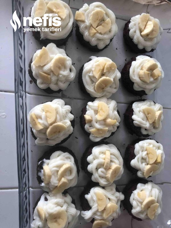 - Soğuduktan sonra kremşantiyi ekleyip çırpın kek soğuyunca aksi çevirip, bardak ile kesiyoruz üzerine kremayı ve muzları ekliyoruz.