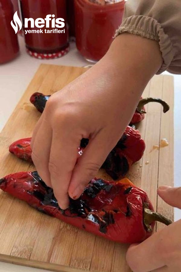 - Biberleri yıkayıp köz tavasında gerili önlü közleyelim ,daha sonra sıcağı sıcağına bir poşete koyup soğumasını bekleyelim.