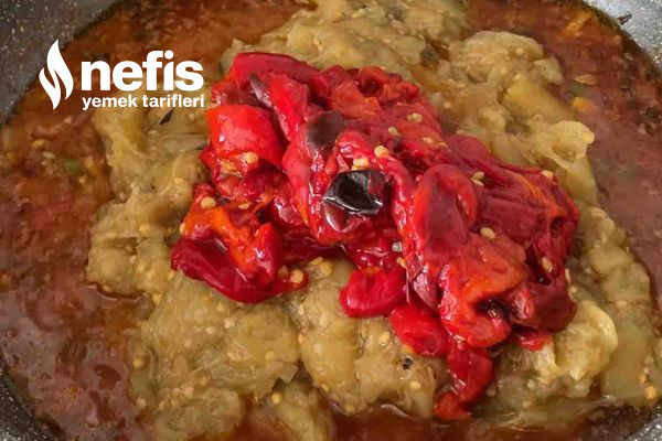 - Domatesler pişince közlenmiş patlıcan ve kapya biberi ekleyip karıştıralım 2-3 dakika daha domatesle pişirip ocağı kapatalım yemeğimiz hazır deneyecek olanlara şimdiden afiyet olsun. ⚠️Benim yeşil biber ve domatesler küçük olduğu için 3 adet kullandım şayet büyükse 2 adet kullanalım.