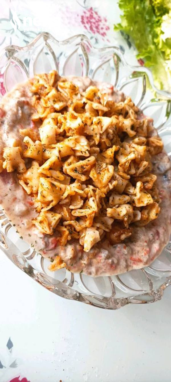4. Son olarak haşlanmış mantı ekleyip, karıştırdıktan sonra közlenmiş sebzelerimizin üzerine döküyoruz. Afiyet bal şifa olsun ♥️