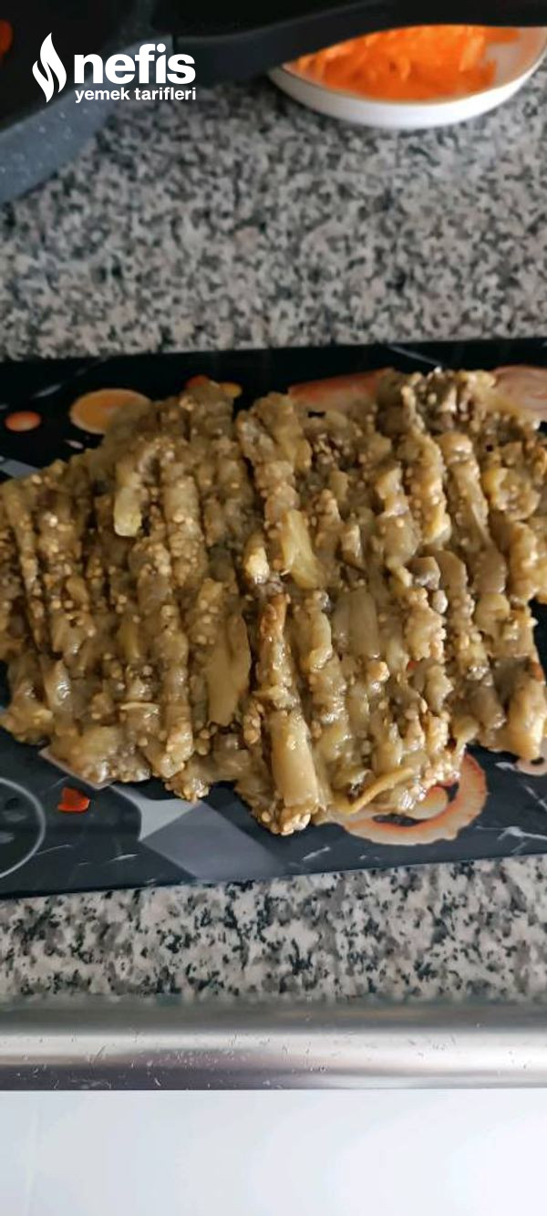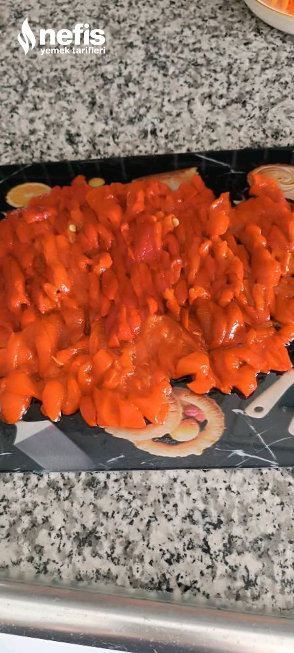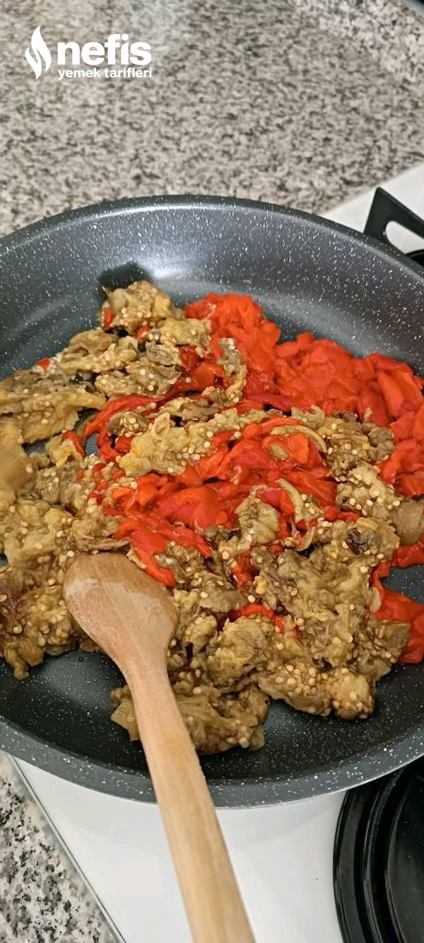 - Patlıcan ve biberi fırında yada ateşte közleyip ince ince doğrayalım.