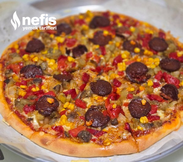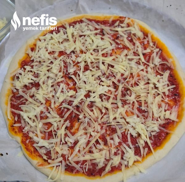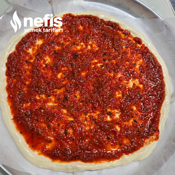 Not; pizzanın sosu için sulandırılmış salça yada konutunuzda kıştan kalan acı soslarıda değerlendirebilirsiniz hamurunu yazdığım ölçülerde yaparsanız bu materyalle ülkü oluyor materyal ağır olduğu için hamuru fazla inceltmeyin.