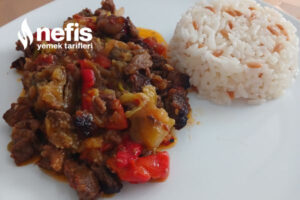 - Kırmızı et küp küp doğranıp pişirilir üzerine soğan biber sarımsak eklenip 5-6 dakika sotelenir. Daha sonra kabukları soyulup küp küp doğranan domatesler eklenir bir 5 dakikada o formda pişirilip ocaktan alınır.