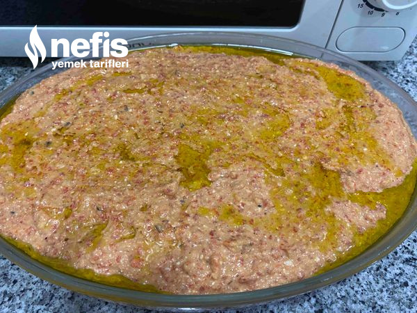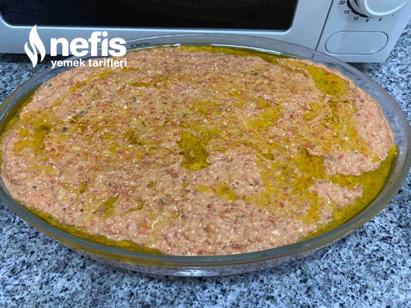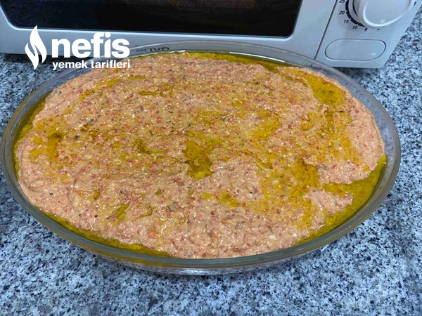 - Servis tabağını alıp yaydıralım ve üzerine zeytinyağı gezdirip, servis edelim. Afiyet olsun.