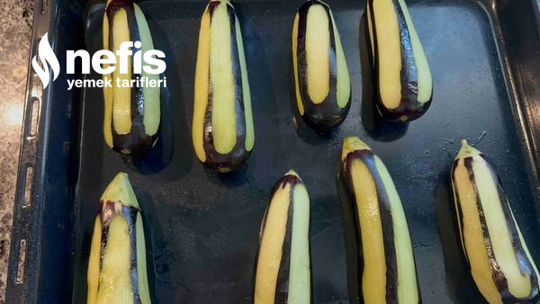 1. Patlıcani alacalı soyalım. Yıkayıp kuruladıktan sonra bir fırça yardımı ile yağlayalım. Fırın tepsisine yerleştirelim 200° evvelce ısıtığımız fırında 30 közleyelim.
