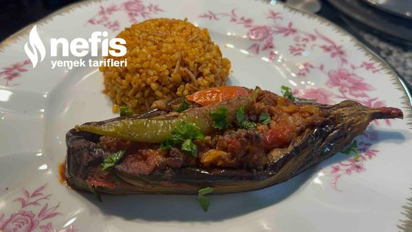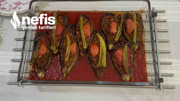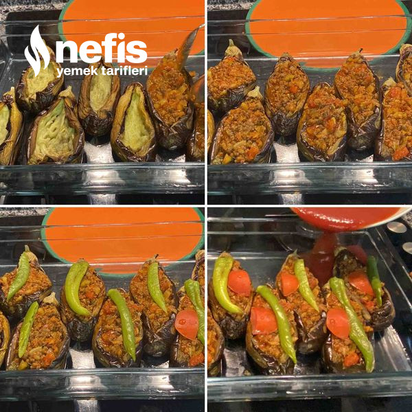 3. Közlenen patlıcanlarımızı ortadan bir bıçak yardımıyla açalım kaşıkla içerisini düzleştirip kıyma harcından koyalım. Üzerlerine biber ve domates bırakarak süreci tamamlayalım. Salça ve suyu da karıştırarak sosunu hazırlayalım yemeğimizin üzerine gezdirelim.