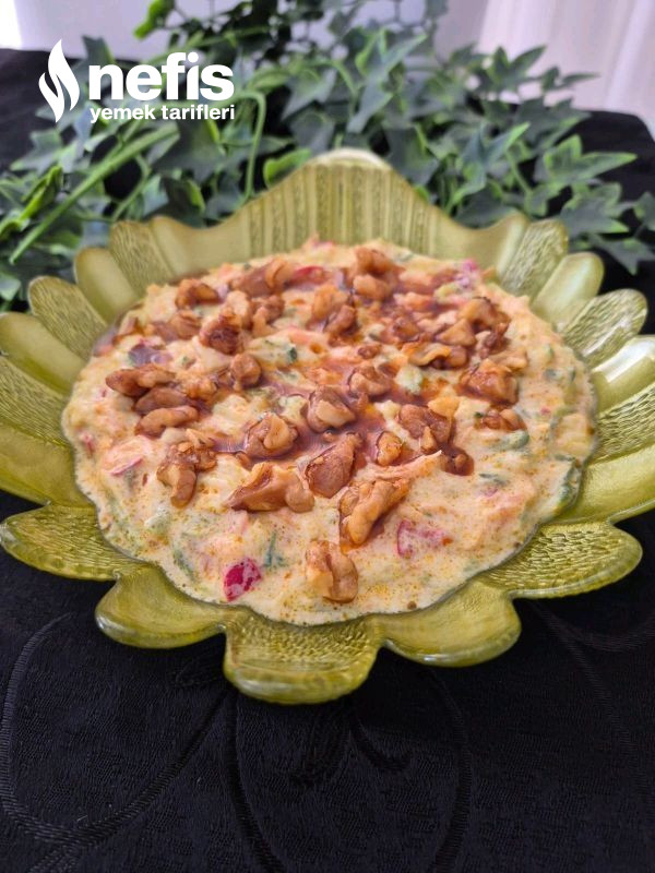 - Yoğurt, mayonez ve tuzu karıştırıp karıştırma kabımıza dökelim. Hepsini bir güzelce karıştıralım, servis tabağına alalım.