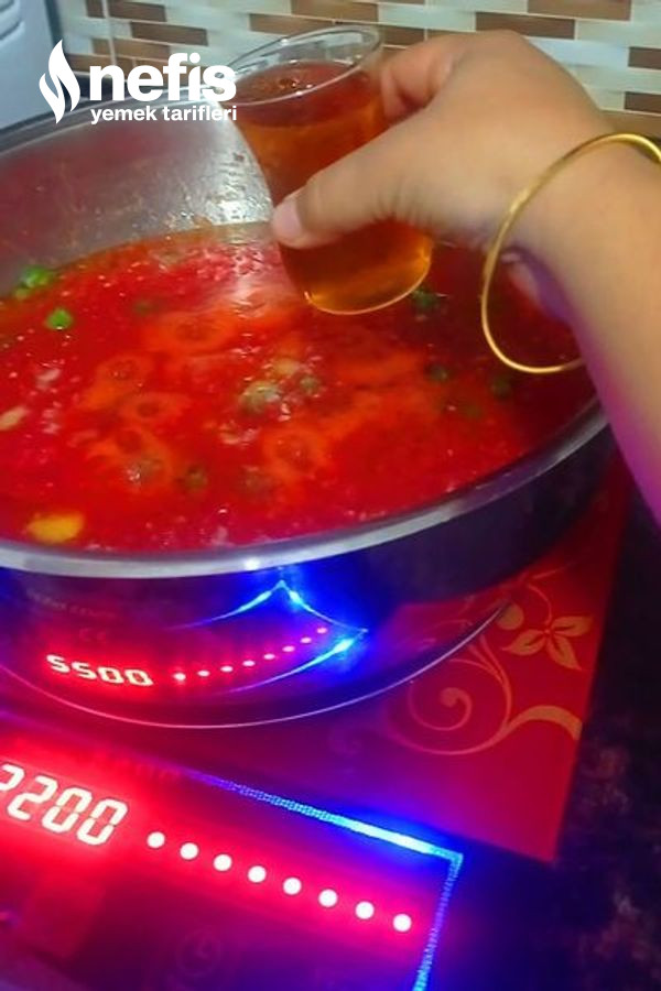 - Daha sonra da sirke ekleyip karıştıralım ve son olarak da tuzu ve şekeri de ek ederek karıştıralım ve kapağını kapatalım ve yeterlice kaynatalım.
