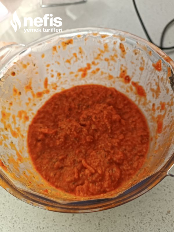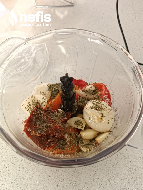 - İçerisine krema, kaşar peyniri ve zeytin yağı hariç bütün materyalleri ekleyip pürüzsüz bir kıvam olana kadar çekelim.