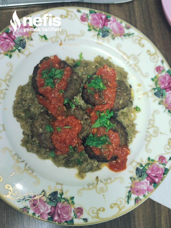 Közlenmiş Patlıcan Yatağında Köfte Tanımı Fotoğraflı Yapılışı
