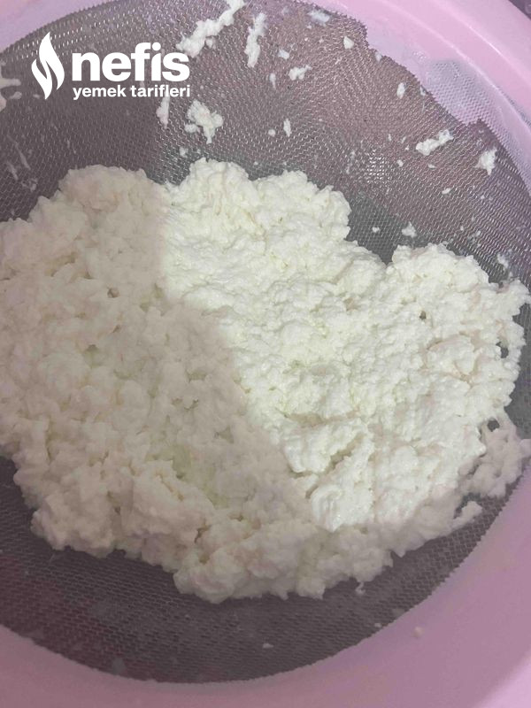 2. 5-6 dakika daha kaynatıyoruz ve sütümüz pütürleşiyor derin bir kaba üzerine süzgeç’e sütümüzü döküyoruz.