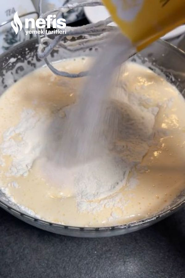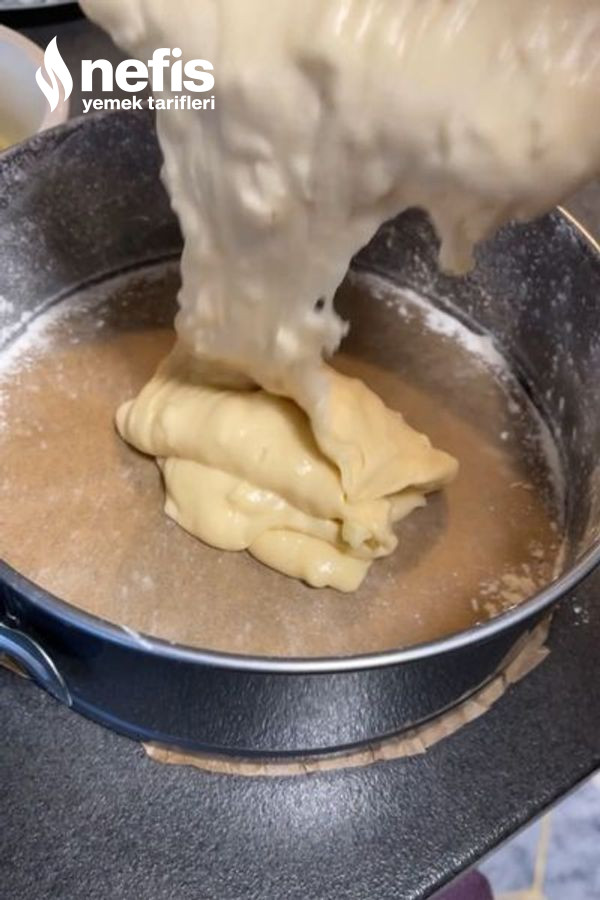 - 24 cm lik kek kalıbının alt kısmına yağlı kağıt serin ,yan kısmını margarin ile düzgünce yağlayıp un serpiştirin ve kek hamurunu kalıba döküp düzleştirin.