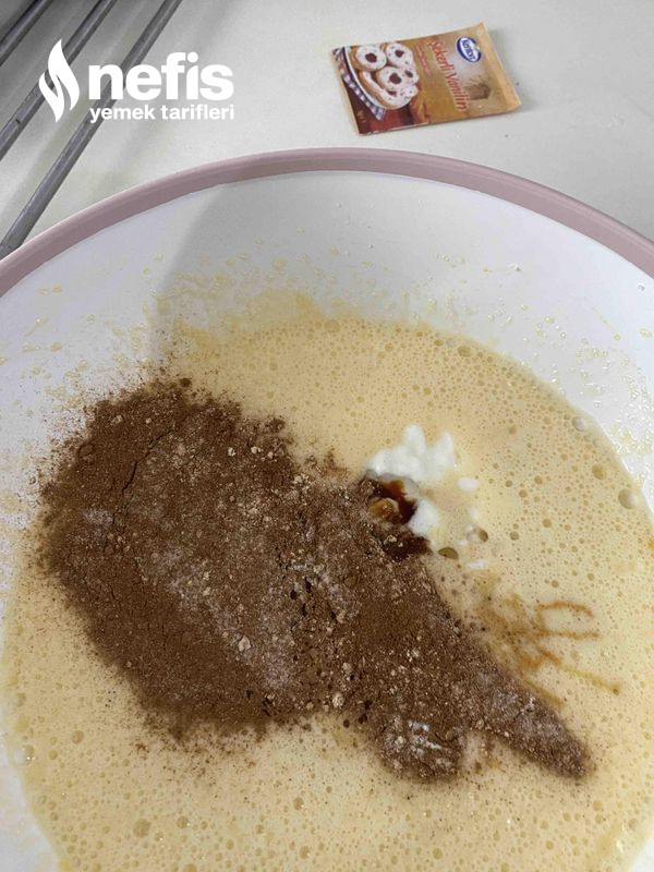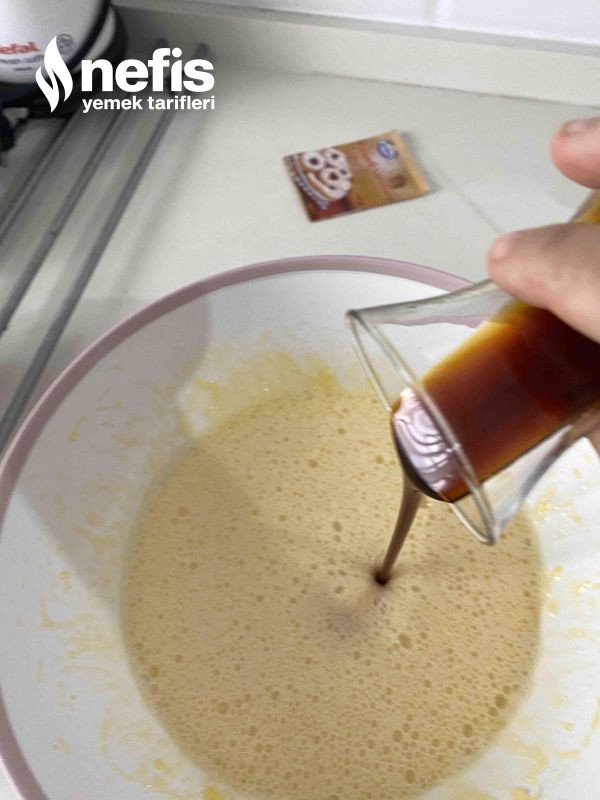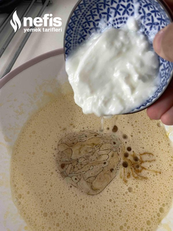 - Oda sıcaklığında olan yumurta ve şekeri çırp sıvı materyalleri ( yağ, pekmez, yoğurt ) ekle.