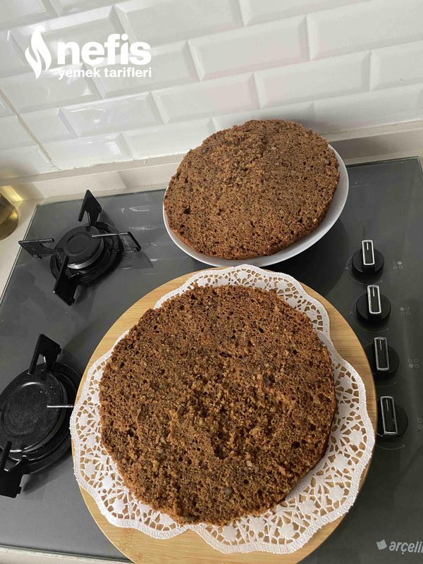 - Pişen ve birinci sıcaklığı çıkan keki ortadan ikiye kes dilersen hiç kesmeye bilirsin ben o hal yaptım.