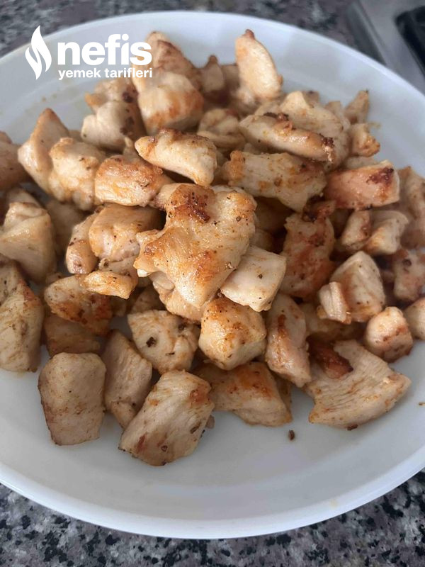1. Tavuklar kuşbaşı doğranır sıvı yağda sotelenir kenara alınır.