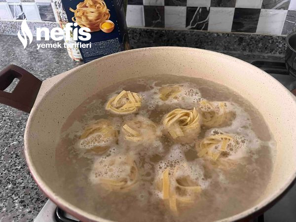 4. Üzerine bir paket krema, tuz karabiber eklendikten sonra tencerenin ağzı kapatılıp kısık ateşte 6-7 dakika pişirilir.