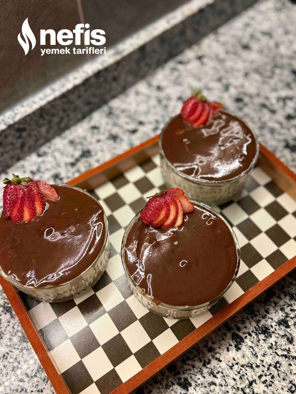 6. Hazırlamış olduğunuz çikolata sosu harcın üzerine dökün.