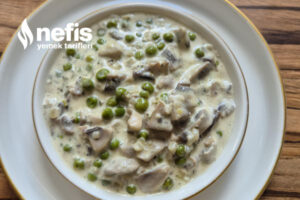 - Mantarlar suyunu saldıktan sonra ve yavaṣ yavaṣ suyunu çekmeye baṣladıktan sonra krema, sürülebilirpeynir,çeṣnili sürülebilir tereyağ ve bezelye ek edilir.