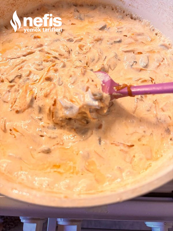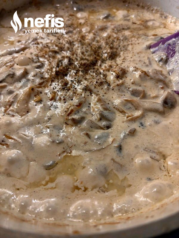 - Ardından çok ince olmayacak biçimde doğradığımız mantarları da üzerine ekleyelim kavurmaya devam edelim. Krema tuz ve karabiberi ekleyip altını kapatalım.