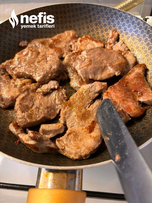 - Etimizi tavaya alalım gerili önlü kurutmadan pişirelim. Tencereye ekleyip, bir iki çeşit çevirelim ve servise hazır. Yanına yada altına patates 🥔 püreside yapabilirsiniz, yada çocuklar için kızartma afiyet olsun.