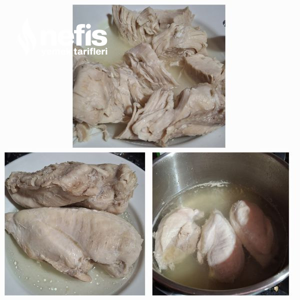 - Öncelikle tavuk göğüslerini küp küp doğrayıp yağsız teflon tavada soteleyebilirsiniz. Ben diğer bir yemek için evvelden haşladığım tavuk göğsü olduğu için onunla devam ettim. Ben bütün bütün haşlamıştım, bu tanımda sosla birleştirmeden evvel modüllere ayırdım. Yağ kullanmadan yemek hazırlamak için de bu metotla devam ederim 🙂 siz her iki tekniği de kullanabilirsiniz.