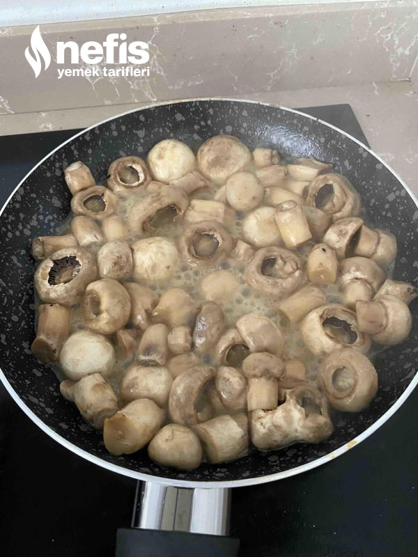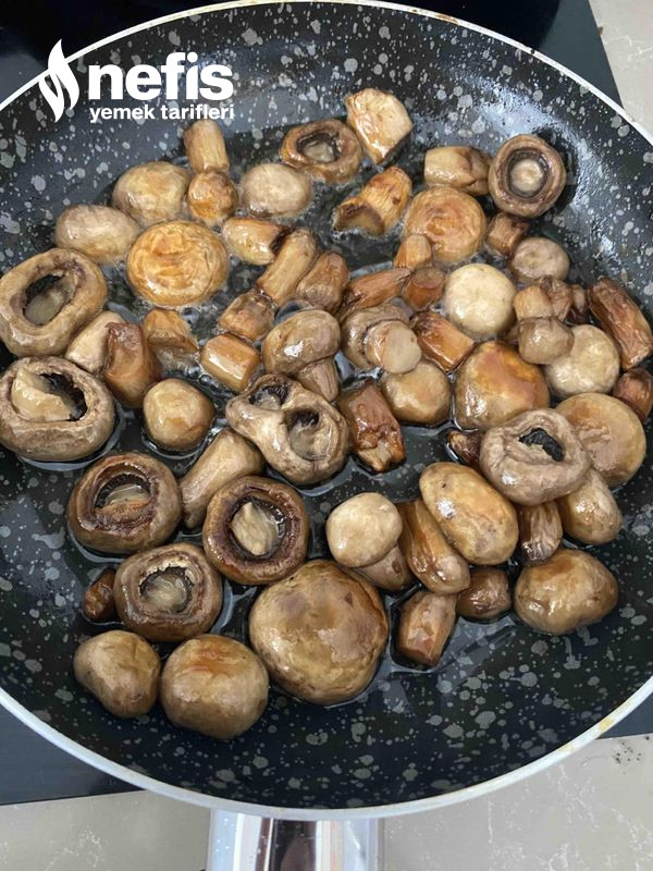 - Önce mantarlarımı güzelce yıkıyoruz bir tavaya tereyağ ile yüksek ateşte kavuruyoruz ,suyunu salıp çektiğinde bir ölçü sıvı yağ ekleyelim ve kızarmış gale gelsinler ve kenara alalım.