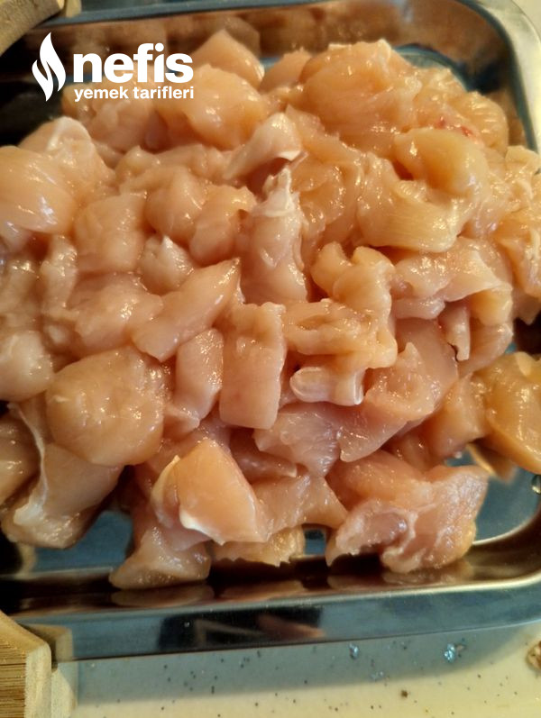 2. Tavuklarımızı dilimleyip hazır da bekleyelim.