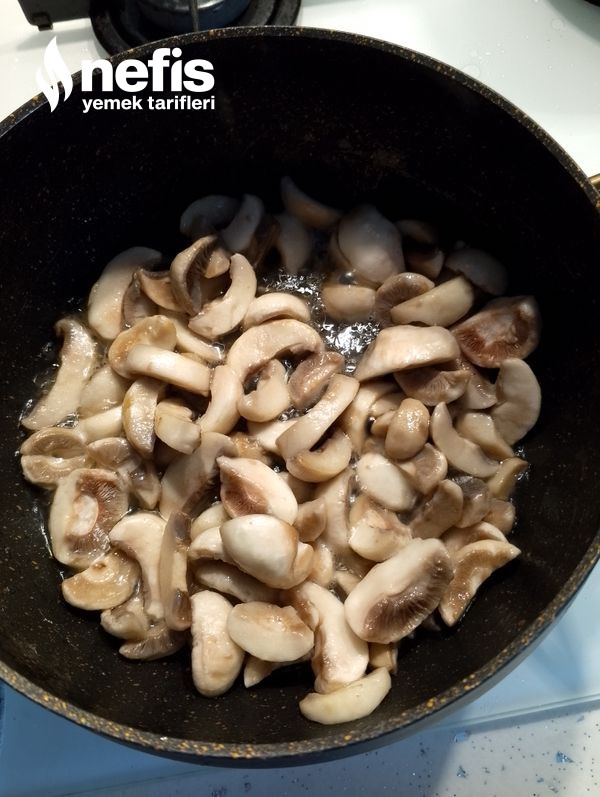 1. İlk başta mantarları dilimleyelim ve uygun bir tencereye yağımızı dökelim, dilimli olan mantarları suyunu çekene kadar pişirelim.