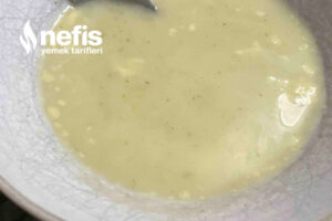 - Ocağın altı iyicene kısılır. İçerisine yaklaşık yarım litre su eklenir ve krema koyulur biraz karıştırılır un eklenir ve güzelce çırpılır.