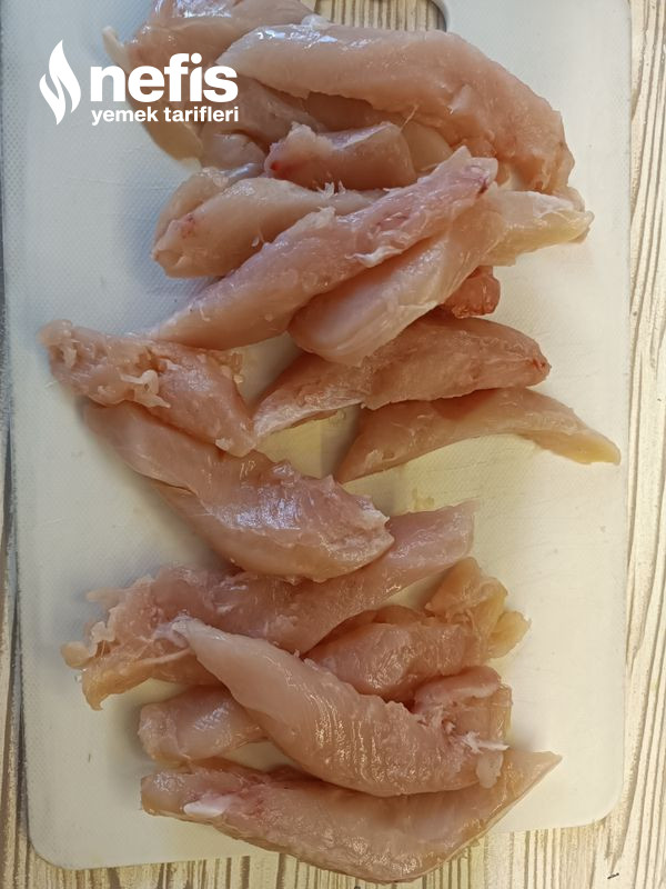 - Tavuklarımızı çok ince olmayacak formda jülyen keselim.