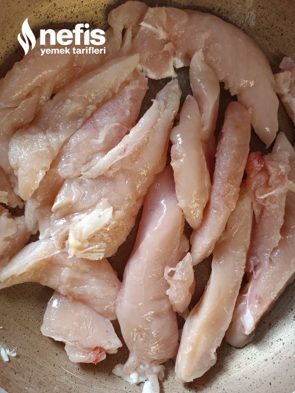 - Yaklaşık 500 gr jülyen doğranmış tavuk göğsü