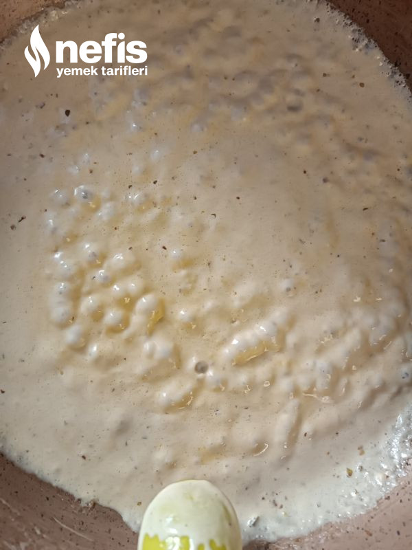- Krema göz göz olunca çabucak sütü ekleyelim.