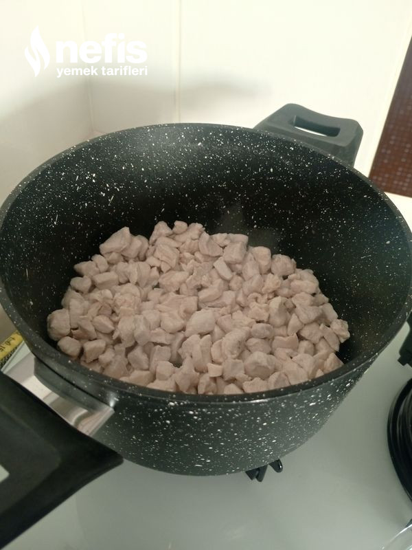 - Öncelikle makarnaları 8-10 dakika haşlayın. Daha sonra birebir tavaya tavukları alın ve suyunu çekene kadar kapağını kapatın orta sıra karıştırın.