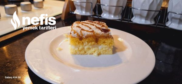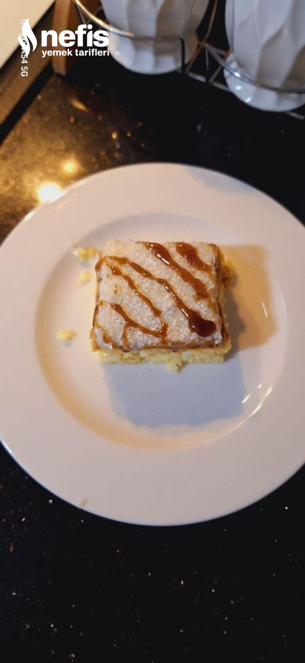 - Keki ıslatmak için hazırladığımız sütün yarısını keke dökelim.