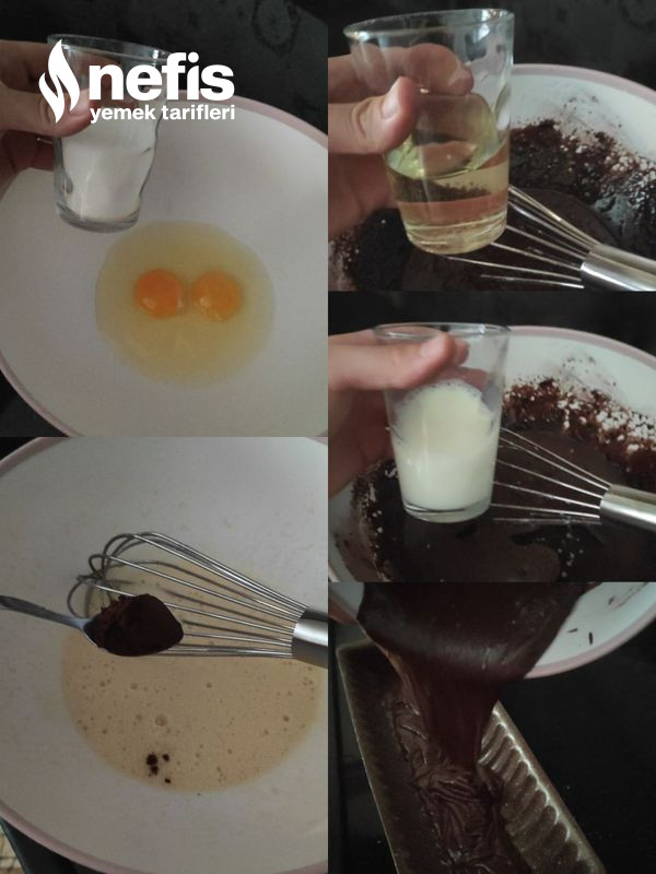 1. Öncelikle keki yapalım bir kaba evvel toz şeker ile yumurtayı alıp çırpalım akabinde un hariç kalan gereçleri alıp düzgünce çırpalım.