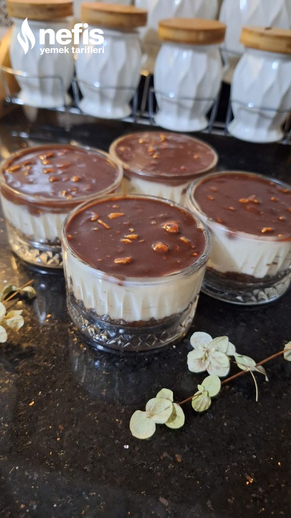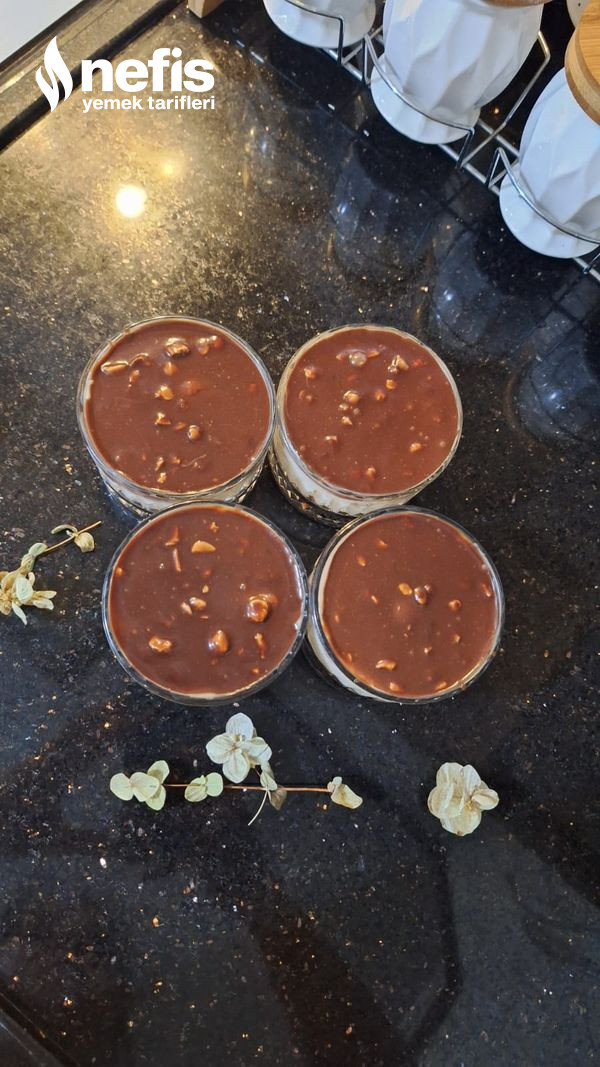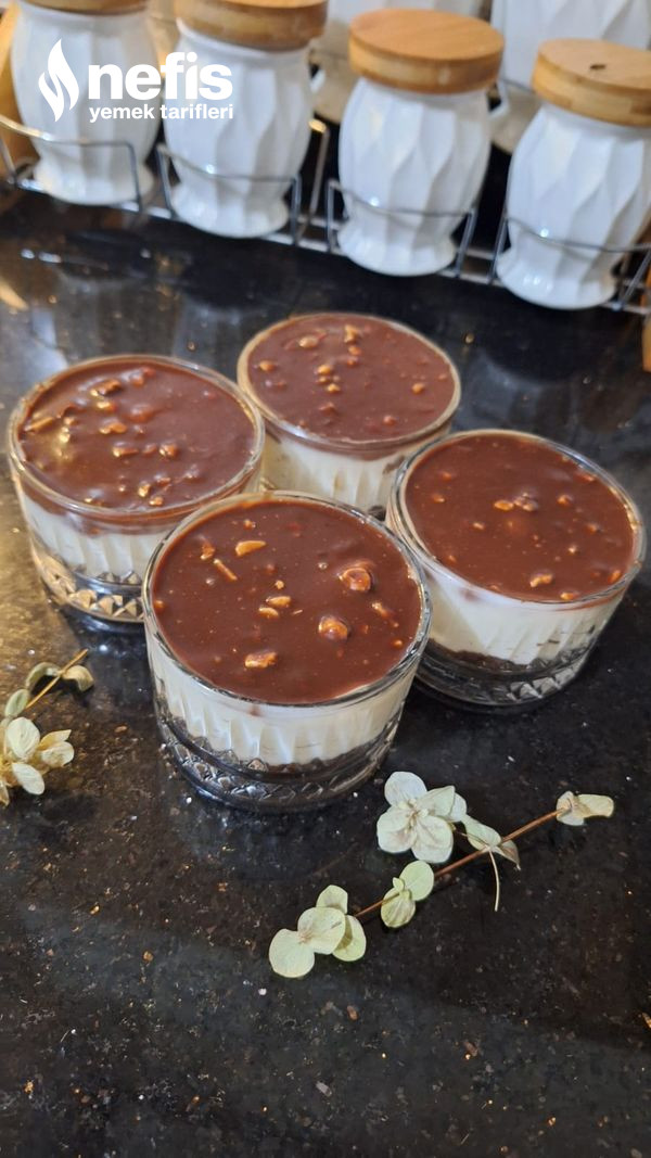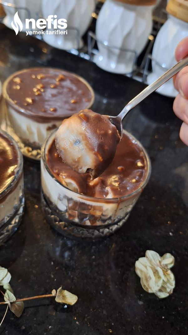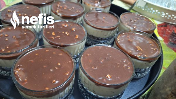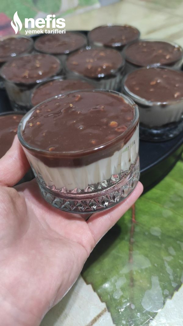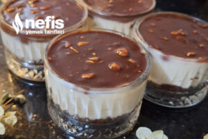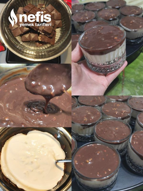 13. Son olarak çikolatamızı da eşit ölçüde koyup ben 2 yemek kaşığı dolusu koydum buzdolabında en az 2 saat dinlendikten sonra servis için hazır afiyet şifa olsun.