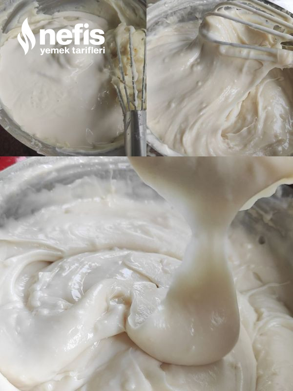 8. Ardından kremayı ekleyip tekrar uygunca çırpalım. Kremamız hazır.