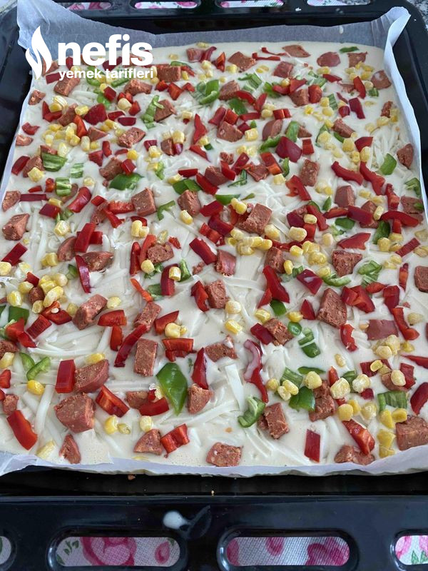 - İlk evvel peyniri daha sonra biberi sucuğu ve haşlanmış mısırı heryere eşit gelecek biçimde dağıtalım.