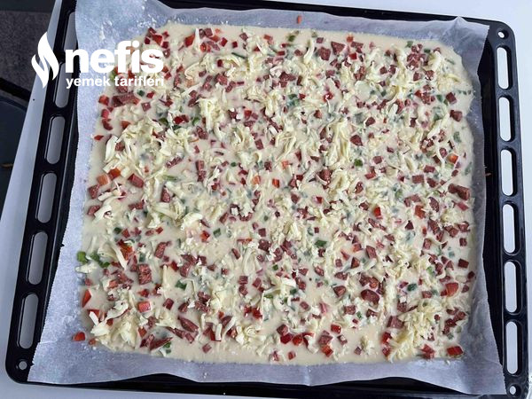 - Büyük uzunluk fırın tepsisine yağlı kağıt serip harcı dökelim.