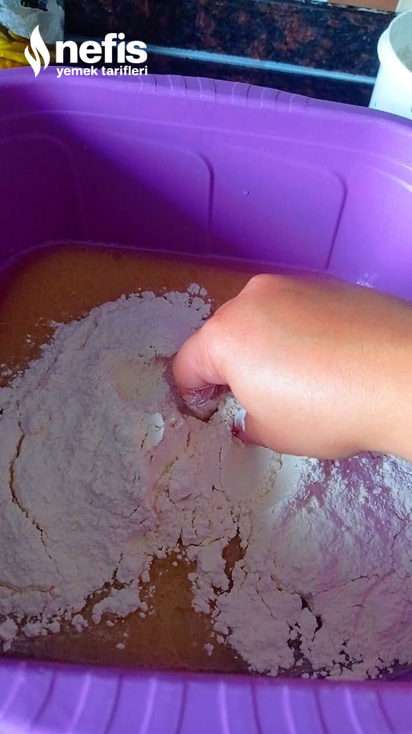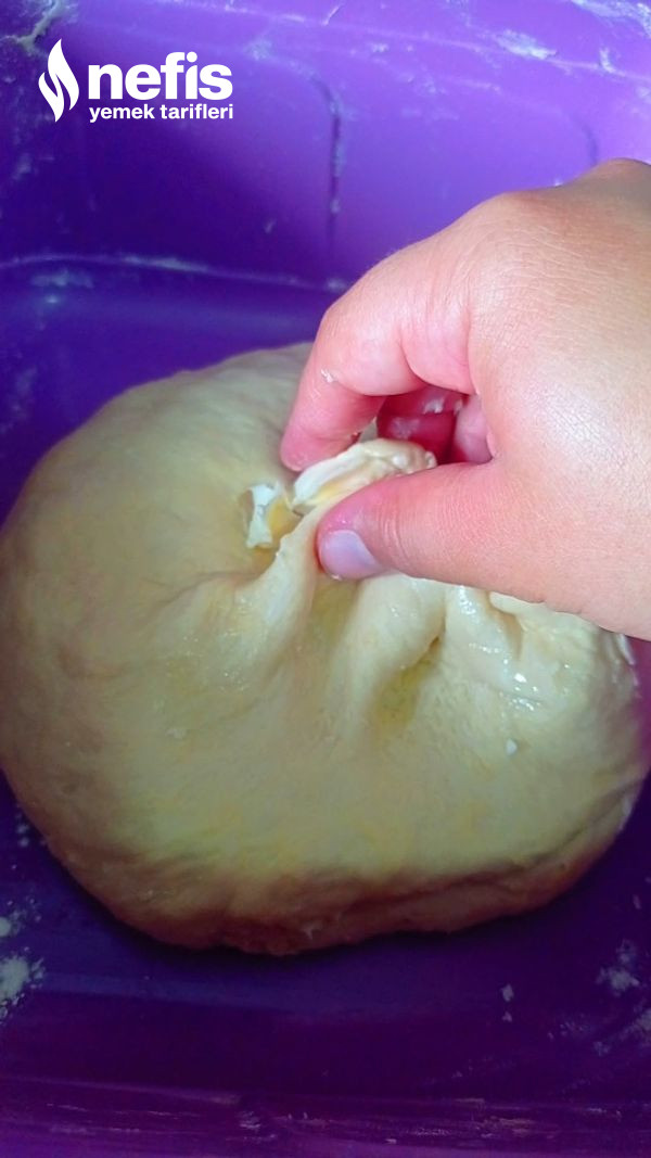- Hamuru için:Su, sıvı yağ, yumurta, şeker, maya, tuz ekleyip karıştırın daha sonra unu yavaş yavaş ekleyerek yoğuralım ve yumuşak bir hamur elde edelim hamurmuzun yoğurma süreci bittikten sonra üzerine tereyağı ekleyip elimizle yedirdim ve üzerini örterek 30 dk mayalaması için dinlendirelim.