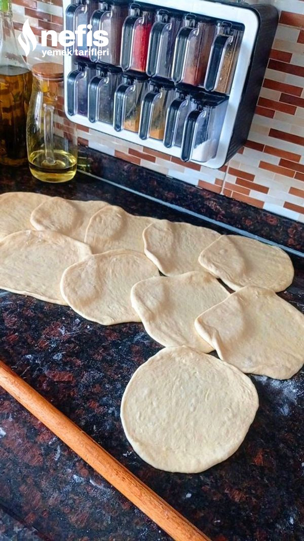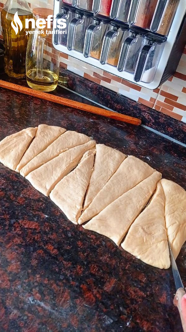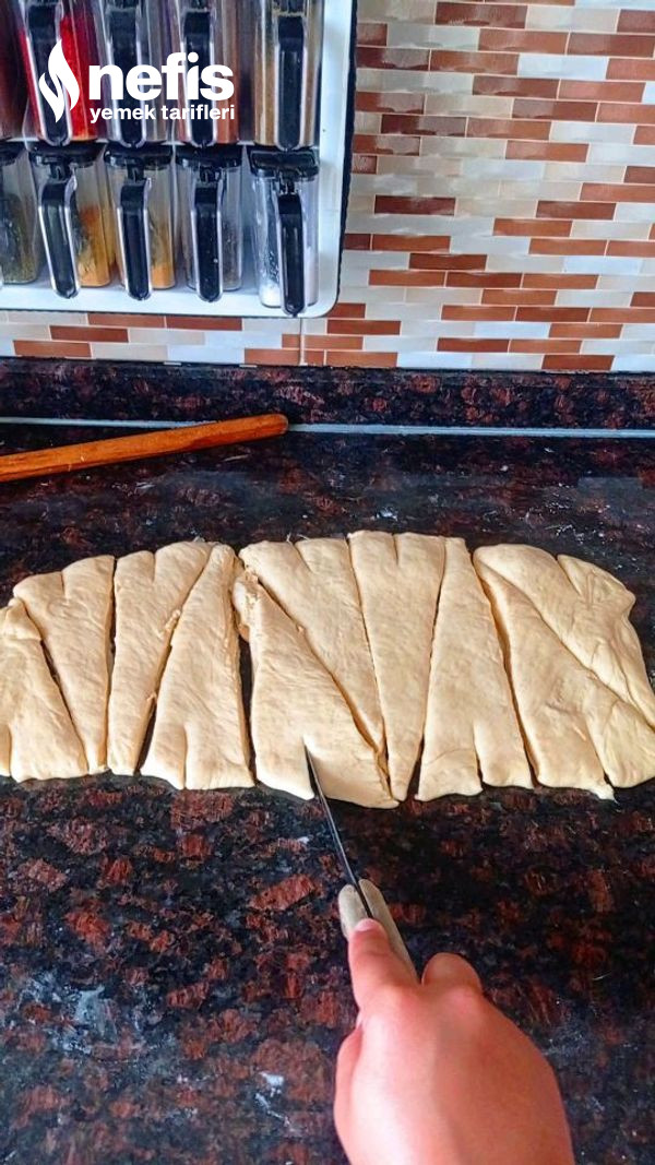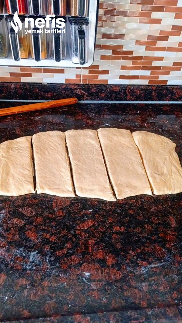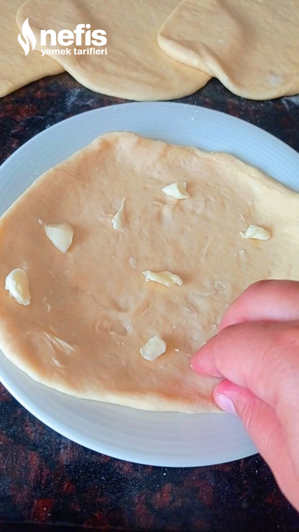 - Birleştirmek için :Mayalanan hamurumuzu tezgaha alalım ve 10 eşit modüle bölelim ve beze haline getirelim oklava yahut merdane yardımıyla tabak büyüklüğünde açalım ve açtığımız hamurların ortalarına tereyağı yahut margarin sürelim her tarafına gelecek halde.