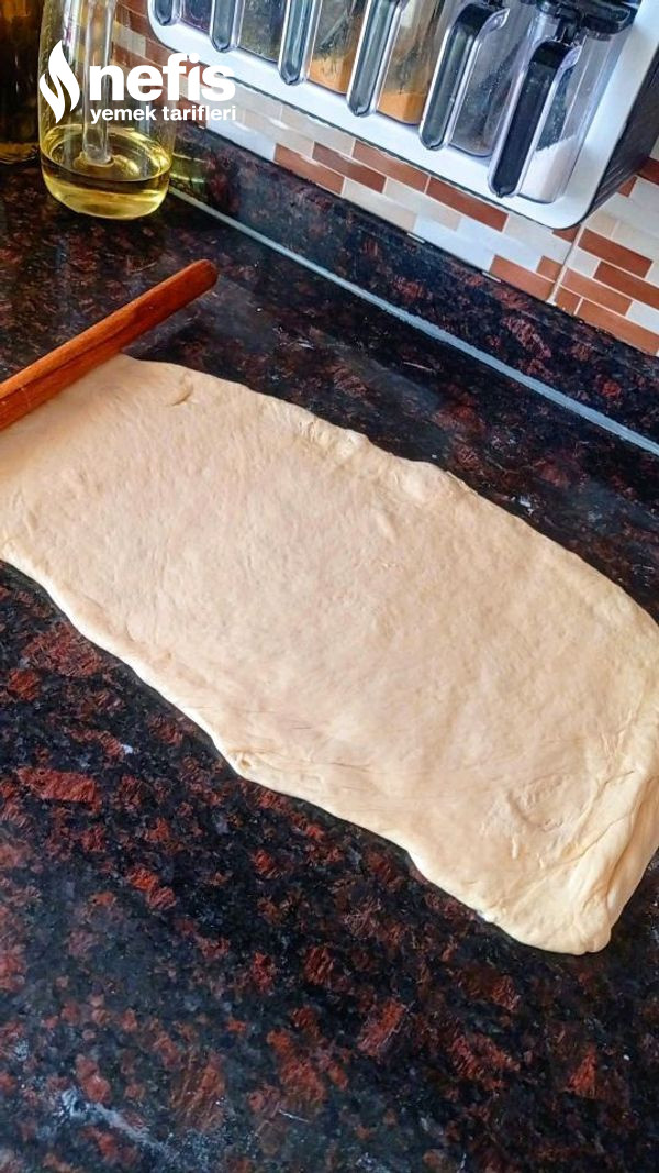 - Hamuru açabildiğimiz kadar açalım, sonra yukardan ve aşağıdan katlayıp dikdörtgen olacak biçimde açalım ,aşırı olmayacak formda ince açalım.