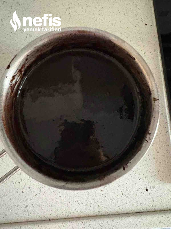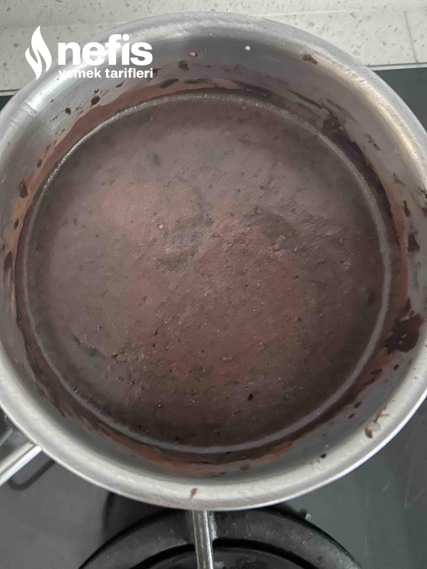 - Bitter çikolata hariç tüm sos materyalleri küçük bir tencereye alınır. Ocağın altı kapalıyken karıştırılarak homojen bir imaj elde edilir.