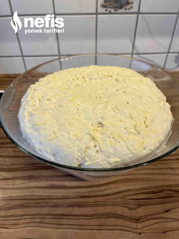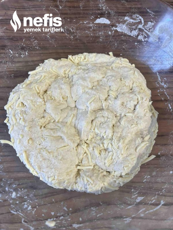 - Daha sonra kaşar rendesi hariç tüm materyalleri ek edip yavaş yavaş su ekleyerek yoğuralım.