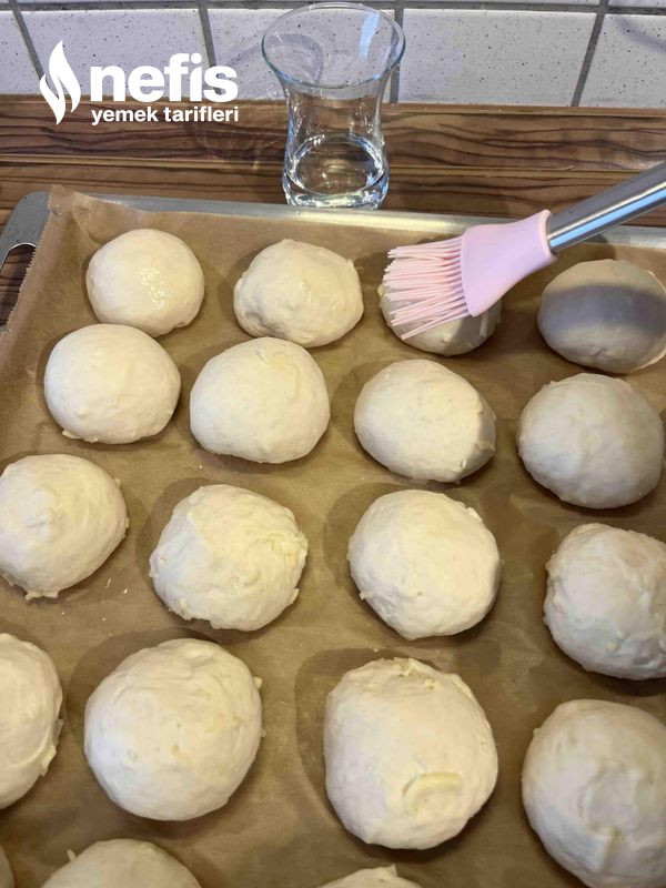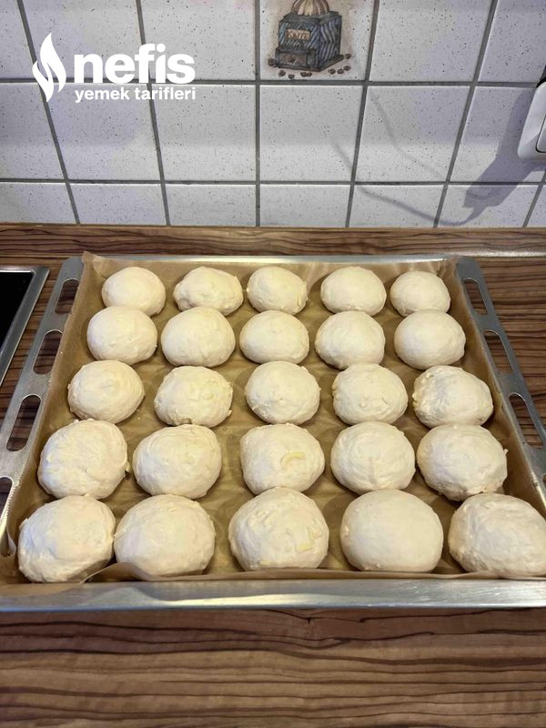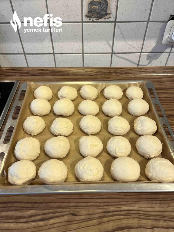 - Mayalanan hamurumuzun tamamını minik bezeler yapıp yağlı kağıt serili tepsiye dizelim.