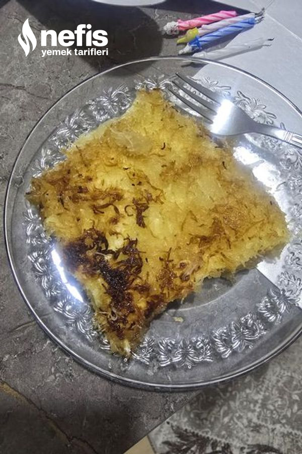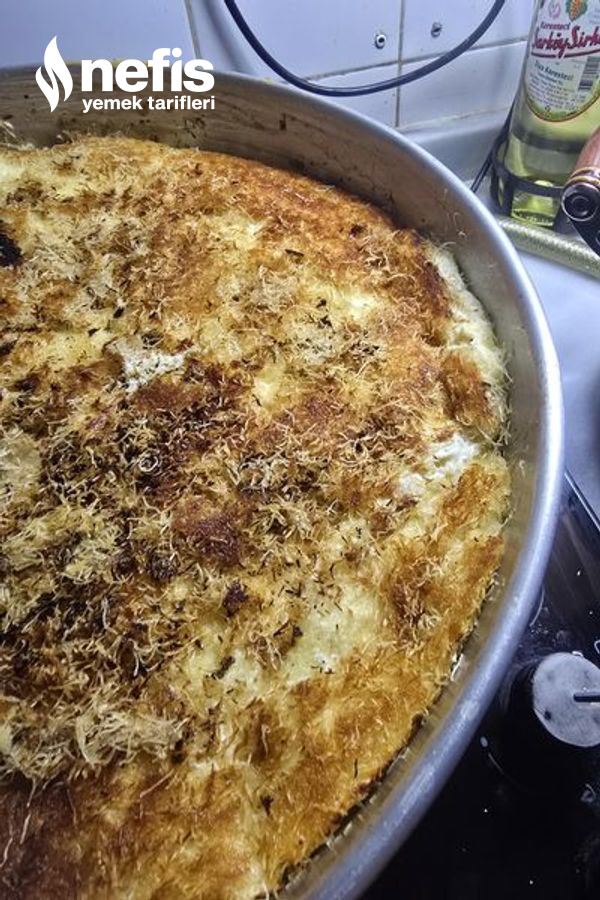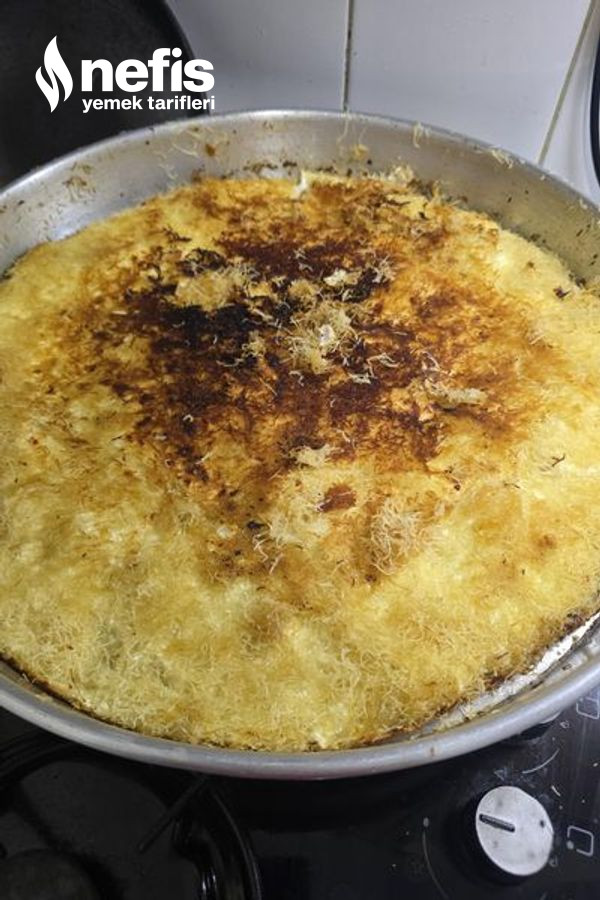 - Daha sonra künefeyi yaptığımız tepsiden biraz daha büyük tepsinin aksisini kapatıp künefe çevrilir.