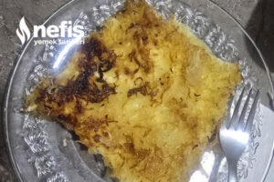 - Daha sonra künefeyi yaptığımız tepsiden biraz daha büyük tepsinin aksisini kapatıp künefe çevrilir.