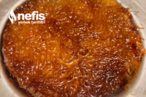 - Künefeyi tekrar pişmemiş kısmı alta gelecek formda tabağa alın ve pişirme sürecini tekrarlayın.